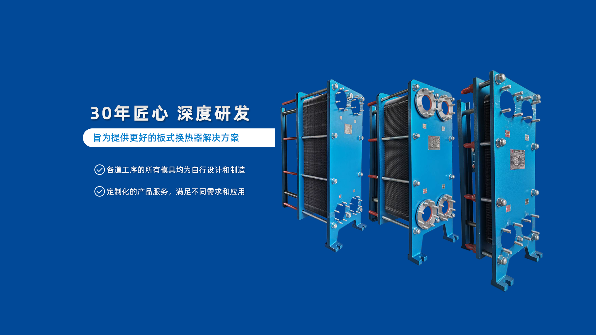 多年來,我們與眾多設計院、研究所有著良好的合作關系,并為他們所設計的許多國內外項目配套了板式換熱器,同時與國內幾個較大的涂裝公司也有著長期的合作與配套業務。我公司已具備開發、設計、制造能力,各道工序的所有模具均為自行設計和制造,解決了用戶各方面的后顧之憂。